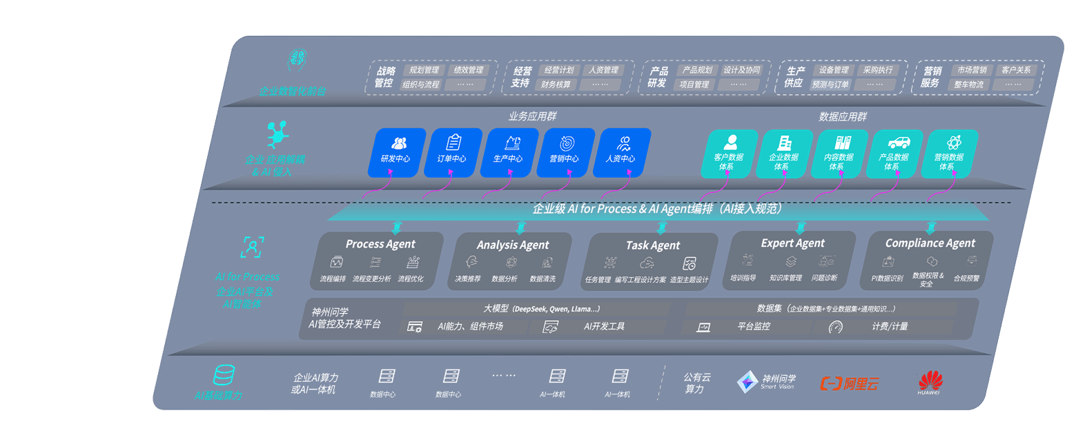 端到端的一站式AI工作空间深度融合了从企业战略规划到日常经营的全流程业务板块,,,定向解决车企内部领域多、、部门多、、、链条长、、、场景碎片化等难题,,,支持车企快速构建以AI为核心的生产力写作体系,,实现任务执行与AI能力的无缝集成与交互
